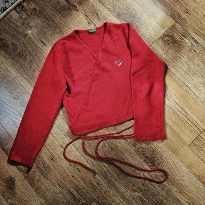 кофта в очень хорошем состоянии. завязываются по талии камушки в реальности очень качественные и очень близнецы, фото совсем не передает блеск. кофта без катишки, бирки отсутствуют, но похоже что есть шерсть в составе. плечи 31,5 см рукав 49 см ширина по талии 33 см длина 37 см
