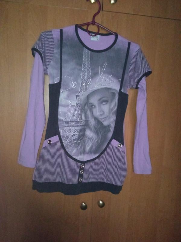 Кофточка трикотаж, с принтом, размер виден на фото. В удовлетворительном состоянии, виден на фото. 1+1=3 акция. Внимательно смотрите фото и описание магазина. Хороших покупок.