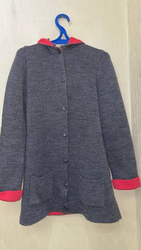 Удлиненная кофта с капюшоном. Приятная к телу и теплая.