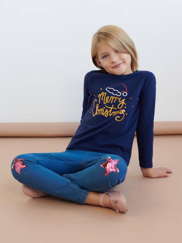 длинный рукав круглый вырез горловины цвет: темно-синий