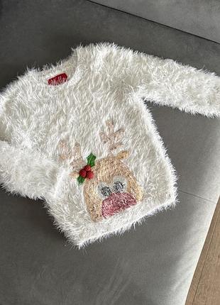 Класна новорічна кофта фірми F&F. На вік 3-4 роки. Довжина 42 см, плечі 29 см, рукав 41 см
