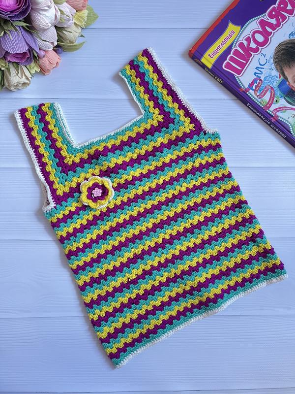 Ручна робота. В’ язана жилетка на дівчинку. На вік- 6-9 років👧 М‘якенька.на дотик. Заміри: довжина - з лямками 46 см пог -31 см, тягнеться максимум до 35 см