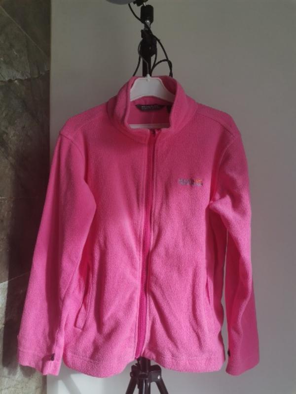 Кофта флісова на дівчинку, р. 9/10 Стан гарний, але на рукові є дірочки Можна загити або аплікацією зробити Довжина спереду 47, сзаду 50 Довжина рукава 49 Ширина под проймой 45, колір рожевий, на фото яскравіше виглядає