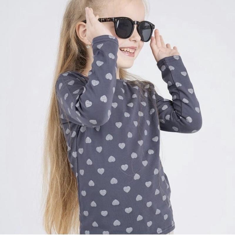 Трикотажний регланчик ТМ Hart Колір сірий зі срібними сердечками Розміри в наявності: •86 •92 •98 •110 •116 •122