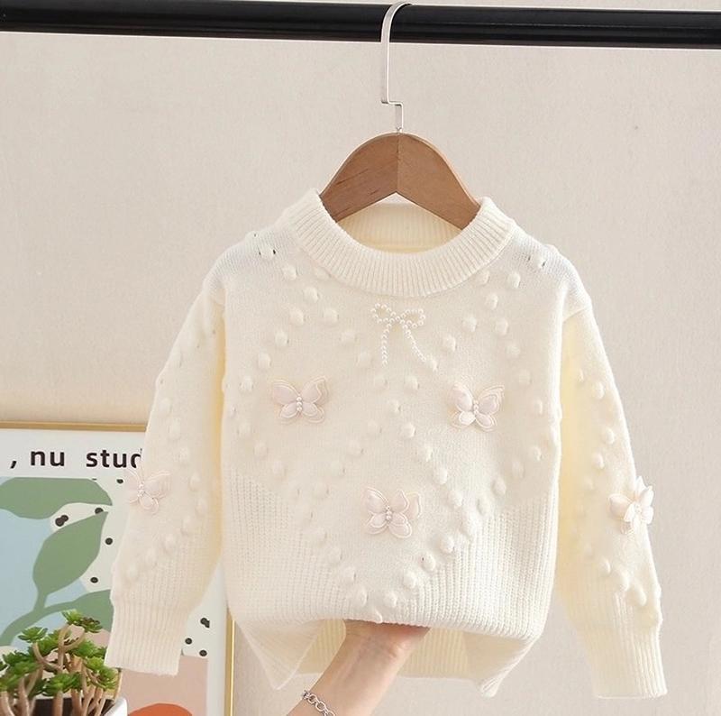 Теплый нарядный свитерик для девочки Очень качественный и красивый 🥰 Невероятно красивый и очень удобный 😍😍😍 Украшен бабочками,с жемчужинками и красивым бантиком из жемчужин Хорошее качество 🔥🔥🔥Рекомендую ✅ 90 - длина 34 см, пог- 28 см,рукав 36 см (5 шт) 100 - длина 36 см, пог- 30 см,рукав 39 см (5 шт) 110 - длина 38 см, пог- 31 см,рукав 41 см (5 шт ) 120 - длина 40 см, пог- 31 см,рукав 43 см (4 шт) 130 - длина 42 см, пог- 33 см,рукав 45 см (3 шт ) Замер рукава от горловины