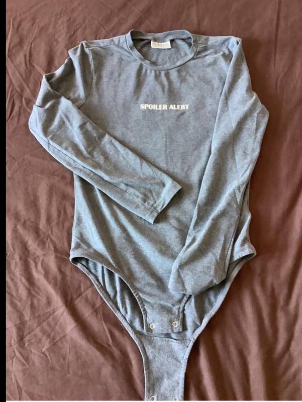 Серое боди с длинным рукавом с надписью, в идеальном состоянии