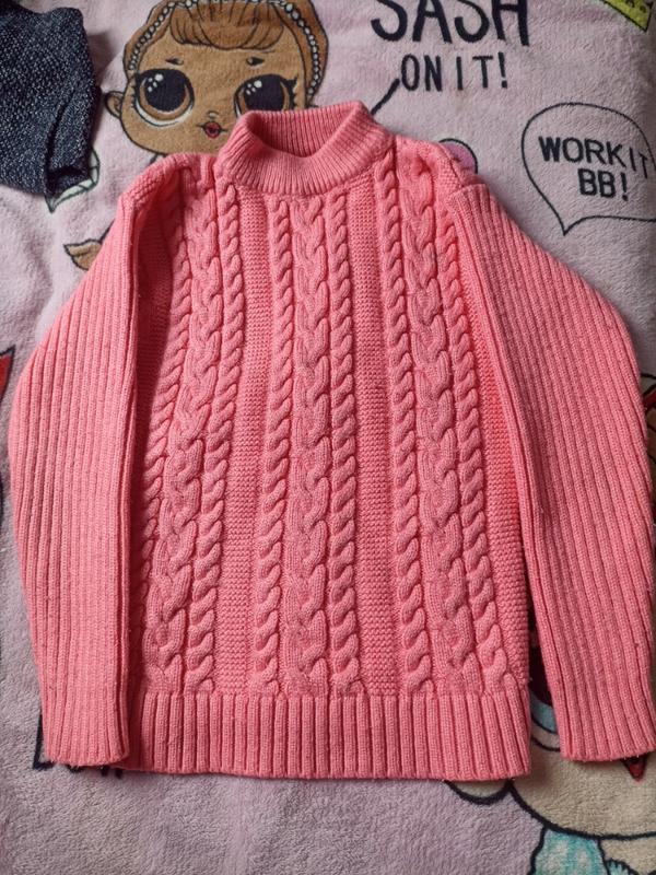 Розовый вязаный мирер, очень теплый, подойдет на холодную зиму