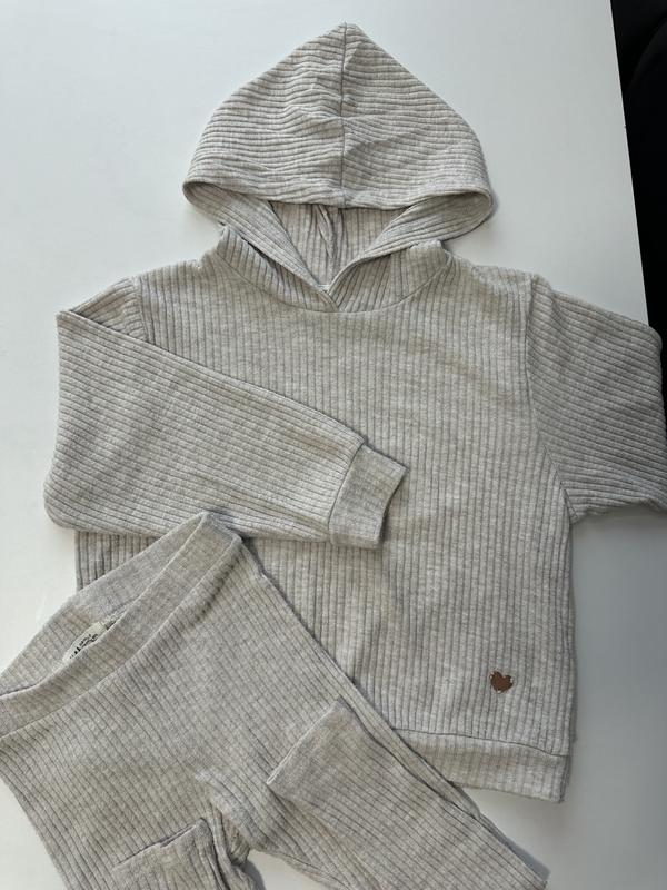 Худи и лосины в рубчик, мягенький, молочный цвет, на 4-5 р. В очень хорошем состоянии. С официального сайта)