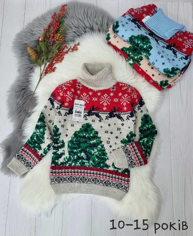 Новогодняя кофточка теплая и удобная ткань: 70 акрил, 30 шерсть двойная машинная вязка, красиво смотрится на ребенке КАЧЕСТВО ЧУДОВА ОДНОЗНАЧНО РЕКОМЕНДУЮ! 10-11(1 шт)-длина 55,рукав от плеча 50, пог 40 12-13(1 шт)-длина 60,рукав от плеча 55, пог 43 14-15(1 шт) -длина 65,рукав от плеча 59, пог 47 +-2 см Цена 740 грн