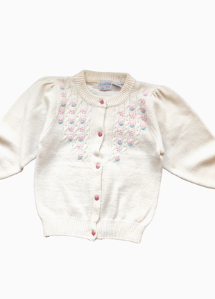 Ніжна кофтинка на гудзиках Указан р.5, носили при росте 120-130 см. Замеры: рукав 41 см + 6 см плече, по 38 см, длина 44 см.