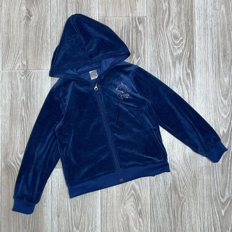 Велюровая кофта на змейке. Впереди 2 кармана. Новая без бирки 7-8 лет, будет и раньше Длина 43. ПОГ 36. Рукав 42.