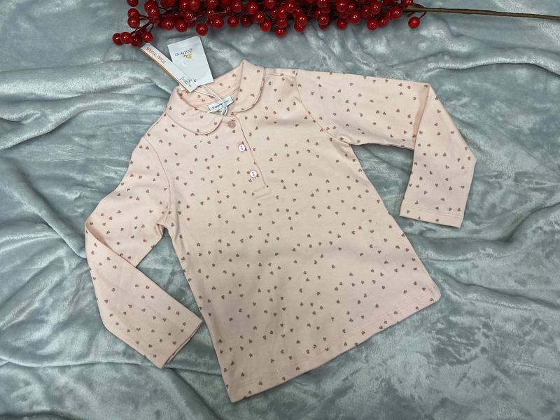 Продам дуже гарну ніжну кофтинку з комірчиком, на ґудзиках , оздоблена блискучими сердечками. Довжина - 39см, від плеча до плеча - 23,5см, полуобхват грудей - 28,5см, рукав від плеча - 36см.