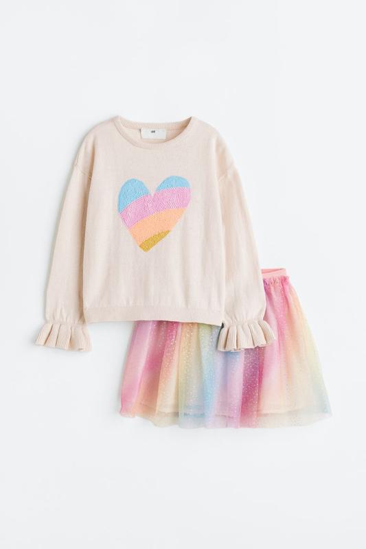 H&M Комплект состоит из вязаного свитера и юбки из блестящего тюля в тон. Идеально подходит для вечеринок и повседневной носки. Свитер с круглым вырезом, ребристой отделкой, длинными рукавами с оборками, ребристыми манжетами и ребристым нижним краем. Двухслойная объемная юбка из мерцающего тюля с блестящим эластичным лифом. покрытие ❕По бирке 28евро 🏷️134-140 🏷️134-140 🛍️ОТПРАВКА КАЖДЫЙ ДЕНЬ 🚀НОВАЯ и 🚜УКР 💵ПОСЛЕ ПОЛНОЙ ОПЛАТЫ 🍿ТОРГА НЕТ