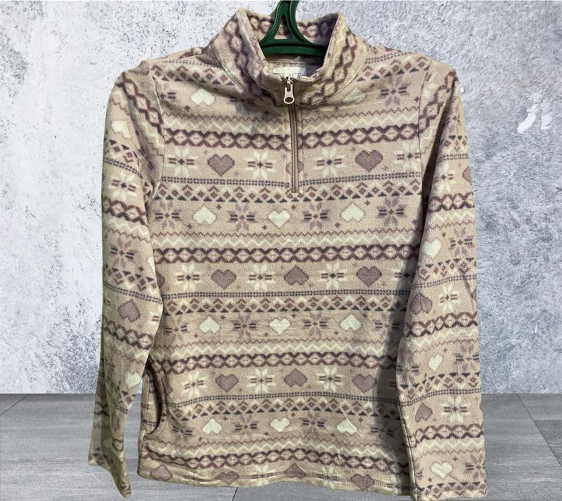 Флісова кофта childrensplace Розмір XXL. Принт сердечка. Бежевого кольору і рожеві сердечка. Тепла флісова кофта з високим коміром для дівчинки від ТМ Childrens Place. Горловина застібається на блискавку. Флісова кофта підійде як верхній шар одягу для прогулянок в прохолодну погоду, так і під комбінезон в зимовий період. Заміри: довжина - 61 см; довжина рукава - 58 см; ширина плечей - 37 см (10)