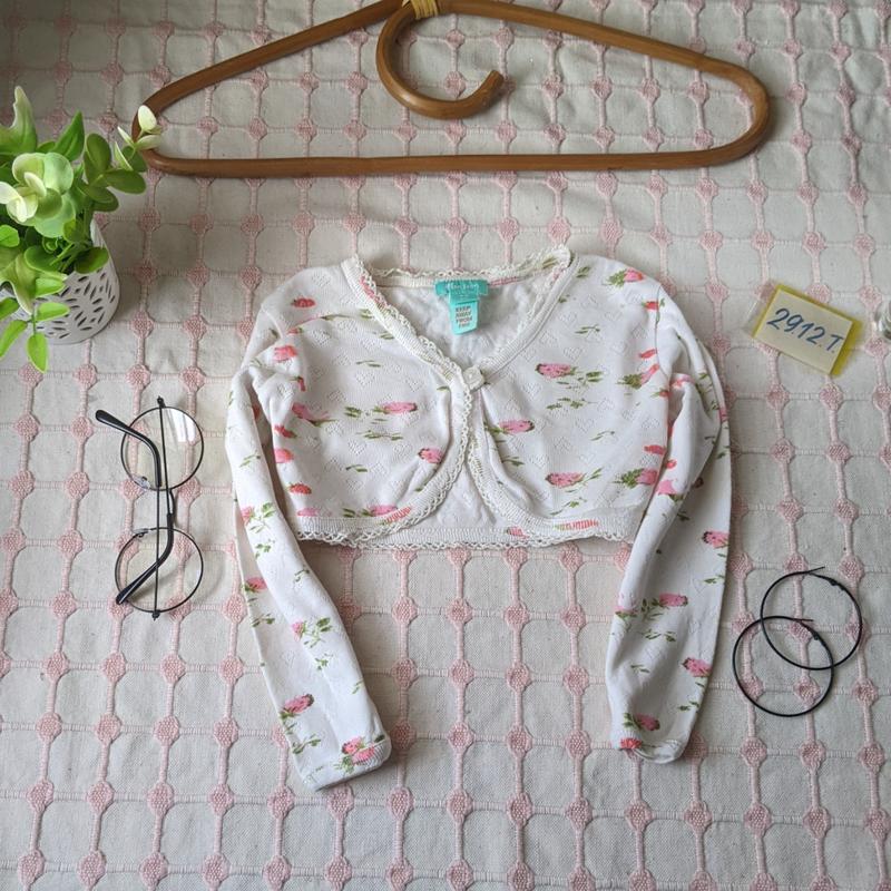 болеро с перфорацией сердечка чисто визуально чуточку крупномерит под мышкой 32 44 притянется рукав от плеча 32 см длина по спинке 20 бавовна , ☘️ очень хорошее состояние мін замовлення -75 грн !