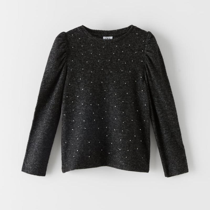 💫Мягкая приятная ткань 💫декорована спереду маленькими стразами 💫Цвет темно - серый в наличии размер 164 13-14 лет ширина между рукавами 40+ длина по спине 58 длина рукава от горловины 62 ZARA оригинал с бирками