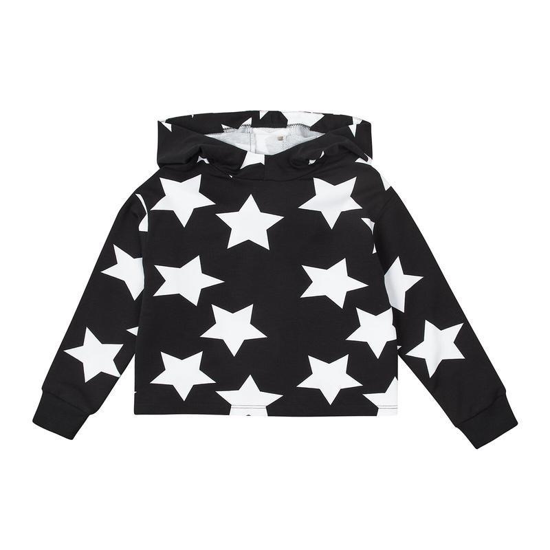 Свитшот кофта с капюшоном для девочки Бемби. Демисезон. Трикотаж двухнитка. Стан идеален. Цвет черный в белую звезду. На девочку 7-8 лет. Склад: 95% бавовна, 5% эластан Замеры: ПОГ - 42 см Ширина низу - 46 см Плечи - 40 см Рукав от плеча - 43 см Рукав от подмышки - 37 см Длина по спинке от шеи - 42 см