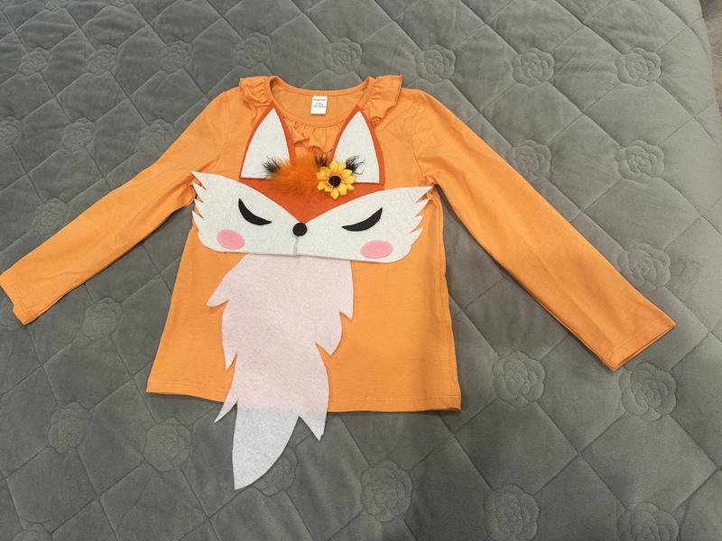 Оранжевая кофточка с самодельным изделием «лысичка»