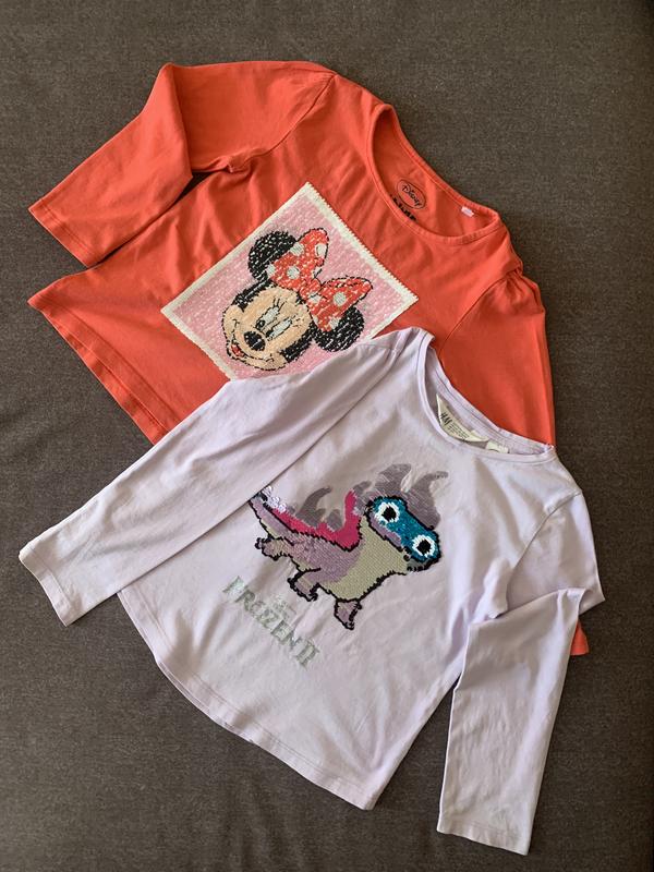 Регламены на девочку рост 110-116 фирмы Disney. Один из Minnie Mouse с пайеткамм. Второй H&M из мультфильма Frozen II с пайетками. Меняет цвет на двух последних фото видно. Заміри надам