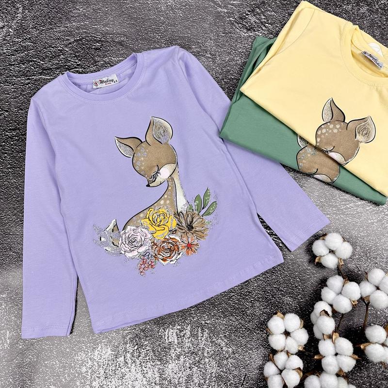 🦋Реглан Оленятко лимонный/лиловый/ зеленый. Ткань очень приятная к телу. Хорошо подойдет в садик, школу или на каждый день. Рисунок - накат, не отклеивается при стирке. Производитель Турция. 📐Замеры: (104-110) - длин. 40/полуобхват 29/ рук. 37 (110-116) - длин. 42/полуобхват30/ рук. 38 (116-122) - длин. 45/полуобхват 31/ рук. 41 (122-128) - длин. 46/полуобхват32/ рук. 43