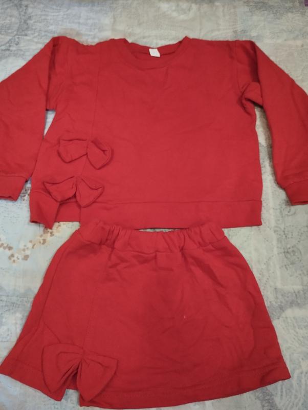 Костюмчик на девочку кофточка и юбочка на поясе резиночка, ткань приятная и теплая, с внутренней стороны мягкий ворс, размер около 80-86, кофточка прямого кроя.