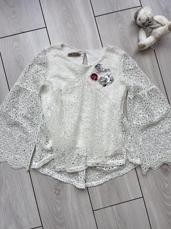 Платье белое с рюшечками. С низа есть подкладка ( не парит тело ребенка) качественный материал (не вызывает аллергии) очень важный фактор Девочка носила под разные штанишки, джигики круто подойдут под стиль Ефектна кофтинка