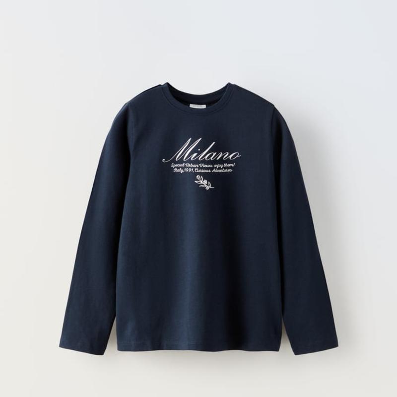Лонгслив темно- синего цвета с контрастным принтом наличие размер 📌140 9-10 лет Ширина между рукавами 39 Длина по спине 55 Длина рукава от горловины 63 100%Cotton Zara с бирками 👌