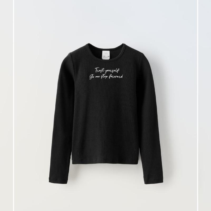 Лонгслив черного цвета в рубчик с надписью, вышитой металлизированной нитью в наличии размер 📌152 11-12 лет маломерит! ширина между рукавами 32+ длина по спине 49 длина рукава от горловины 61 Состав ткани 97 % бавовна 3% еластан Zara Turkey с бирками!