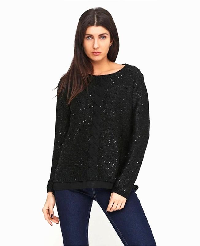 🖤 красивый джемпер с пайетками, стильное спущенное плечо красиво тянется сзади удлиненный Итальянский бренд по наборке на рост 158,ориентируйтесь на замеры Рукав от горла 58см Пог 44см Длина 55-60см