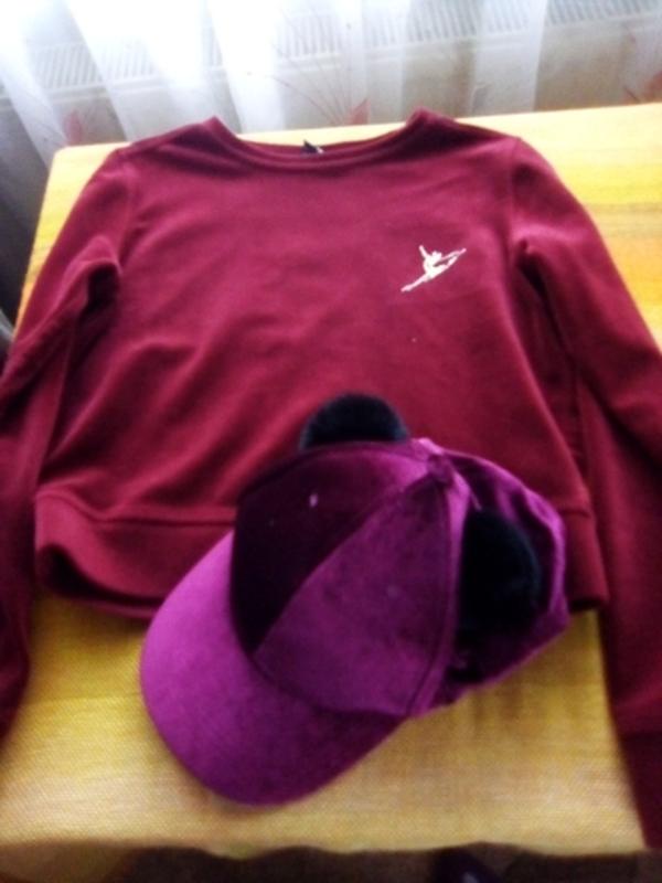 кепка велюровая с ушками + укороченный свитерик ( сюда добавлю сюрприз для подростка )