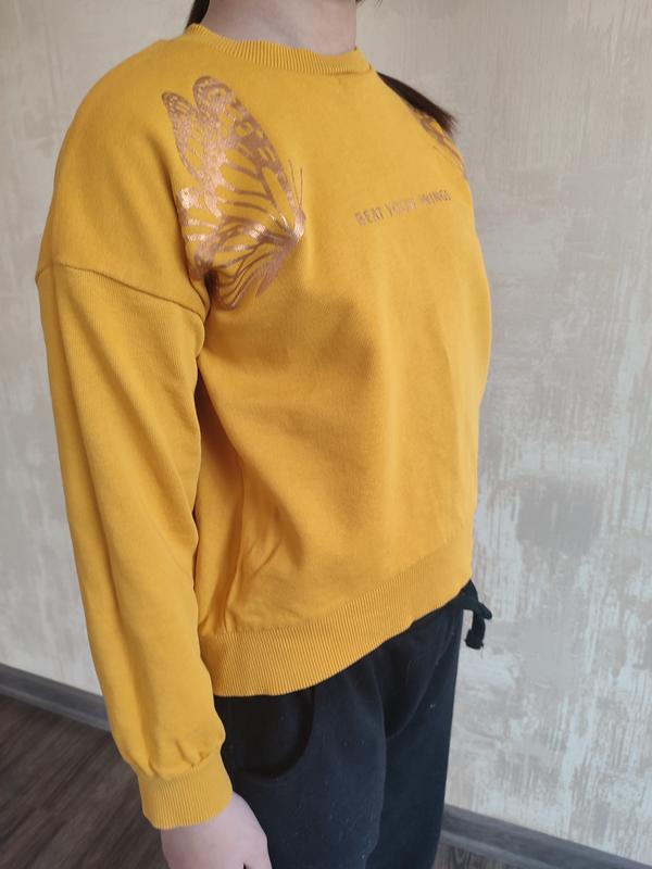 Кофта в отличном состоянии, носила мало. Сзади немного удлинена. Присутствую цвет более насыщенный горчичный. Качество супер. Замеры: длина перед 44см,зад 49 см, ширина 42 см, длина рукава 54сс к горловине ( сам рукав 38,але плечо опущено)