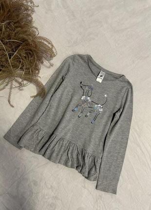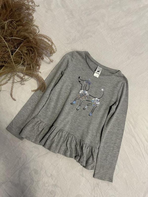 Тягнеться,не щільна/ Підійде на 6-9 років/ Гарний модний фасон з срібрястими паєтками і рюшкою/ Довжина 48 см/ Плечі 29,2 см/ Рукав 48 см/ Пог 36 см/ Пот 34,5 см/ Поб 45 см/ З нюансів-є мікрокатишки на фото вказано,у ціні враховано,продається як є без повернення/
