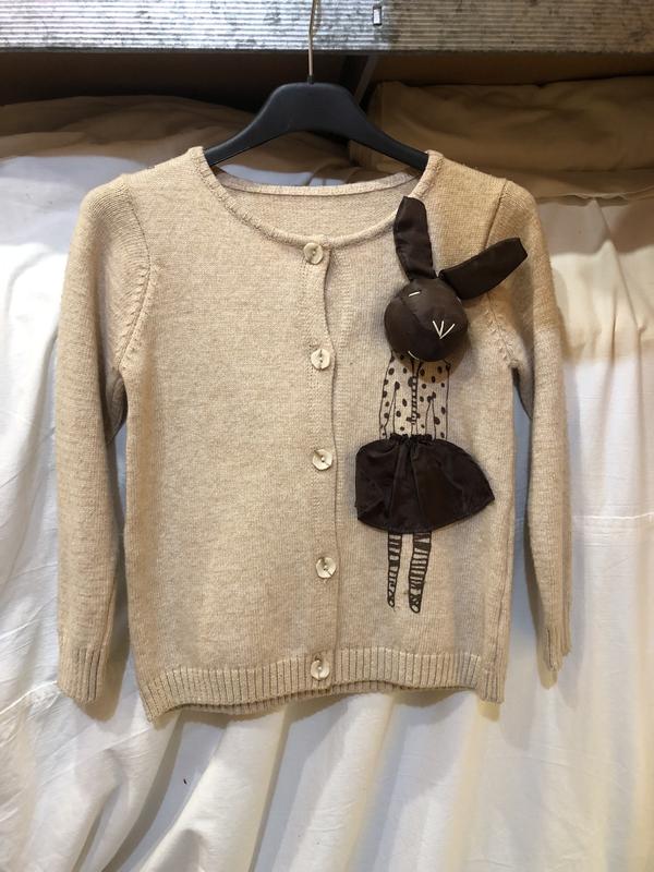 Кофта дівчача, з обʼємним кроликом Заміри: довжина 46 см півобхват по груді 36 см довжина рукава 44 см плече 8 см Тканина: віскоза; нейлон Колір: бежевий