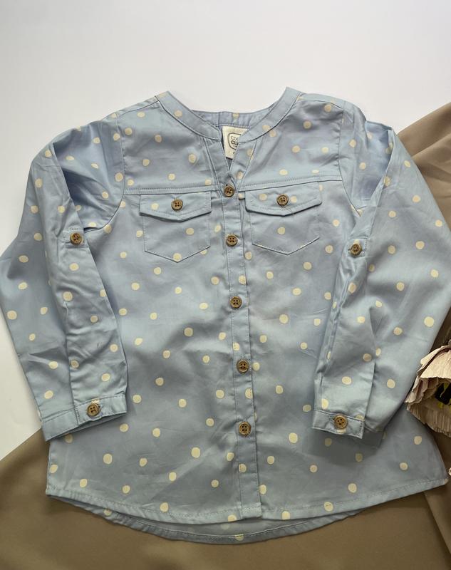 Рубашка на пуговицах. Рукав делается три четверти. Cool Club 98 размера. Замеры: длина 39 см, полуобхват 31 см, рукав от плеча 35 см. Есть обмен/возврат в течение 7 дней.