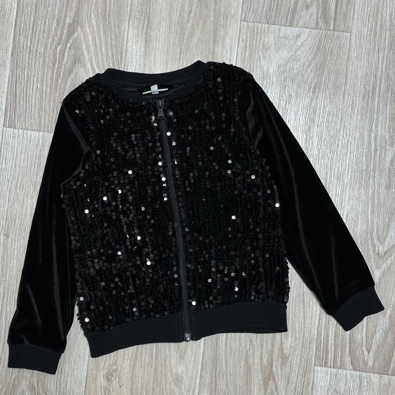 Велюровая кофта на змейке. Украшена пайетками с двух сторон. Состояние идеальное 🏷️milla star 6 лет/116 Длина 40. ПОГ 36. Рукав 40