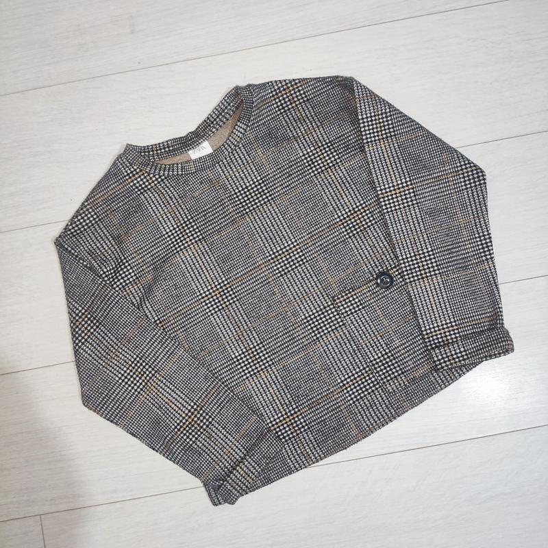 Стильна кофта Zara в клітинку, оверсайз. Виглядає дуже класно. Лінія плеча запущена. Склад тканини: 75% прліестер, 24% віскоза, 1% еластан. Розмір: 9 років, виміри (напівобхват грудей - 44 см, довжина - 48 см, довжина рукава від вороту - 55 см) Доставка: Оплата на картку, Доставка НП, УП
