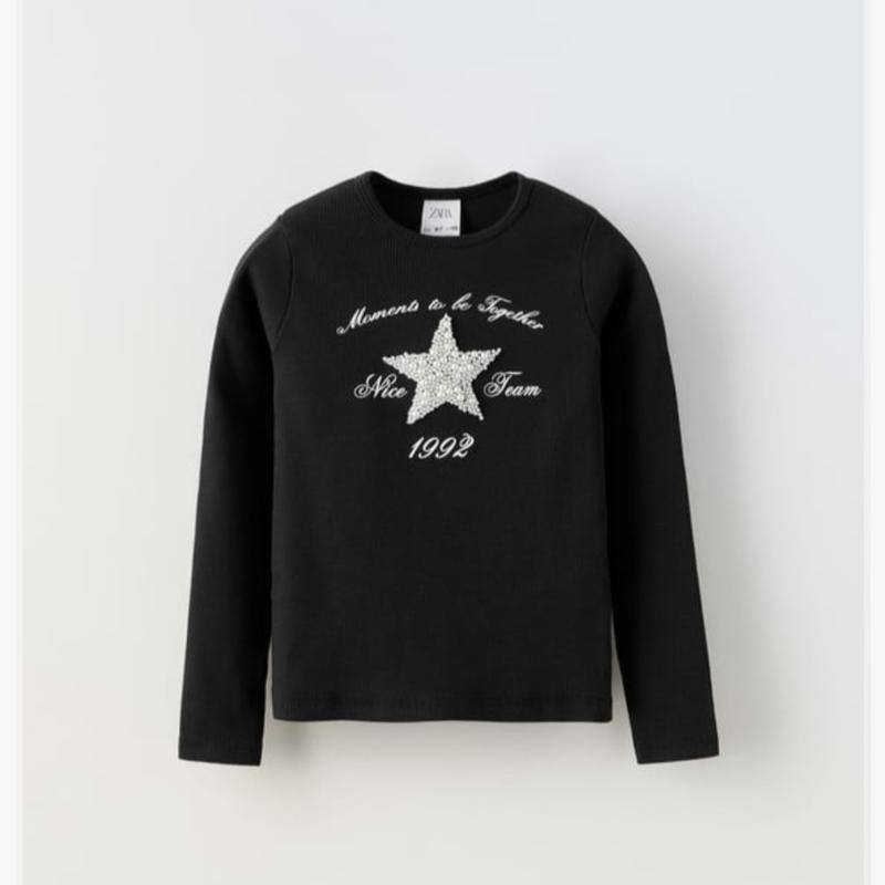 Лонгслив черного цвета в рубчик с декором из бусинки маломерит! 📌 164 13-14 лет Ширина между рукавами 33 длина по спине 52 длина рукава от горловины 67 Zara с бирками 👌