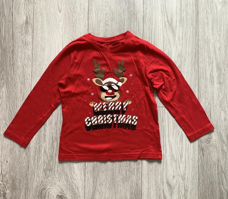 Кофточка новогодняя, одетая была всего 1 раз, следов ношения нет. Размер 116 (5-6 лет) надпись: «Merry Christmas” - Замеры в фото, дополнительные сделают которые будут нужны. 100% бавовна.