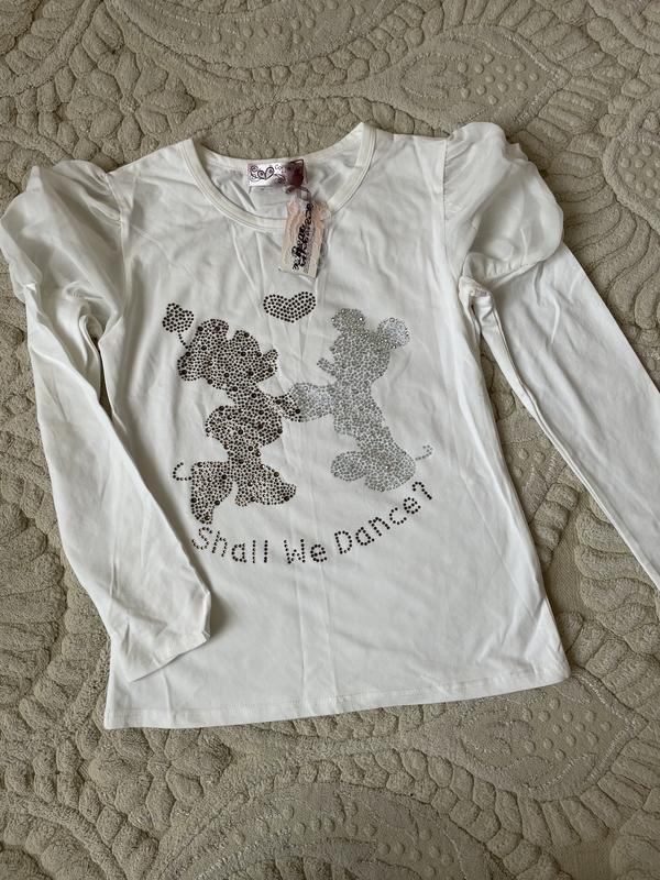 Нарядная и красивая кофта, молочного цвета из приятного и мягкого трикотажа украшена качественными стразами двух цветов, новая, замеры на фото, Рукав с элементом шифона в виде модели фонарик.