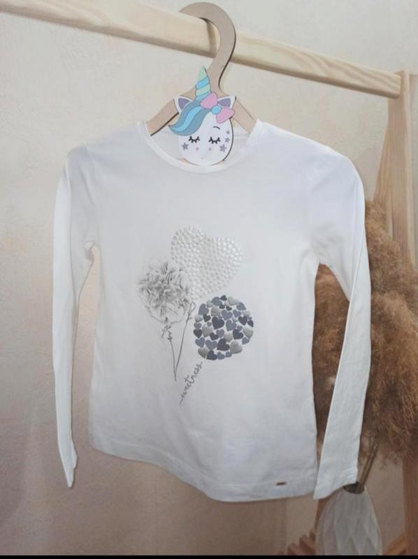 Лонгслив, нарядная кофта Mayoral, 9/134 Носилы по росту 122 см. Замеры: рукав + плече 44,5+7 см, по 33 см, длина 49 см.