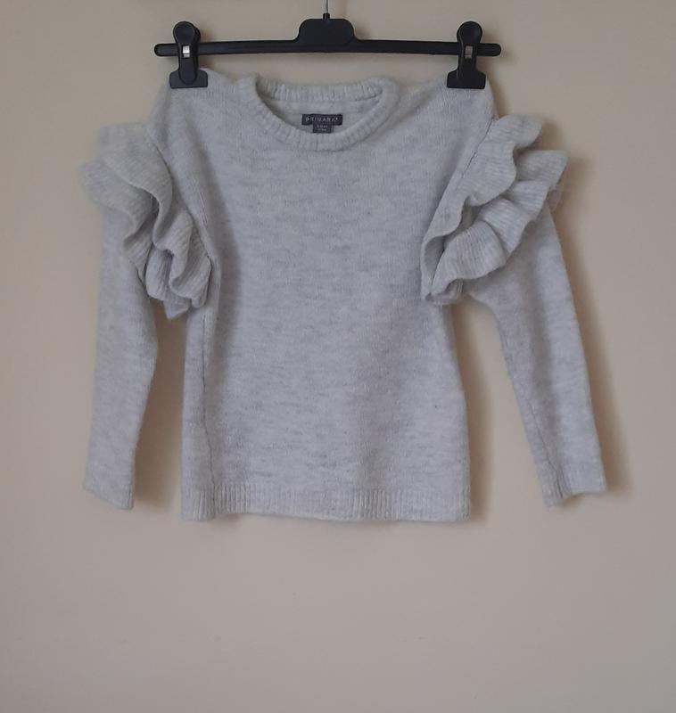 Джемпер фабричного в'язання сірий. Фірми Primark, KEEP AWAY. На 9-10 років, 140см. Склад- 71% акрил, 27% поліестер, 2% еластан. Рукави декоровані рюшами. Дуже мягкий, теплий, приємний до тіла. Стан дуже хороший. Заміри у вільному стані: Пів об'єму Плечей 39см Пів об'єму Грудей 38см Довжина рукава 45см Довжина 47см