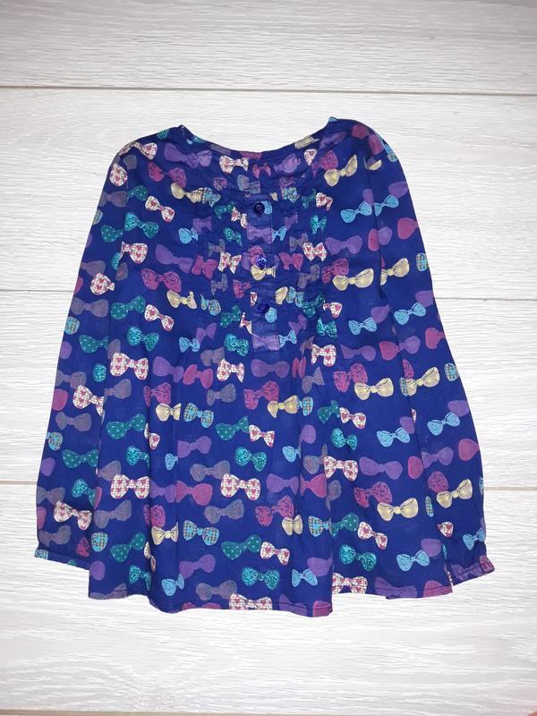 Легенька фірмова блуза для дівчинки 5-6 років. Попереду застібається на гудзики. Склад 100% бавовна. Стан дуже хороший Заміри: довжина по спинці від плеча 43 см, ширина між пахвами 35 см, рукав від плеча 38 см, по внутрішньому шву 27,5 см, Виробник: Nutmeg Розмір: 5 / 110 Колір: Синій, Різнокольоровий