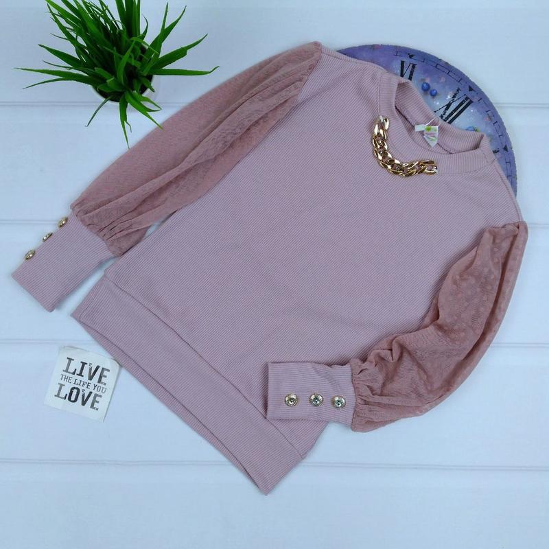 Цена 520 грн Невероятно стильная кофточка 🤩🤩🤩 Изюминка - очень крутые рукавчики 🦋 Широкие манжеты с пуговицами и сеточка в горох 🦋 Украшение - трендовая цепочка 💫💫💫 Тканина: мустанг-рубчик Производитель: Украина 🇺🇦 р.146-1шт р.152-1шт ЗАМІРИ ⤵ +/- 1-2см!!! ◾ р.146- длина 48см/ рукав 52см/ ПОГ 38см ◾ р.152- длина 51см/ рукав 56см/ ПОГ 40см