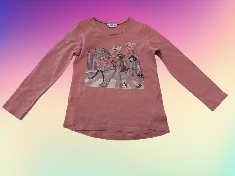 Легка кофтинка Mayoral на дівчинку 5 років. Зріст 110 см, приємна на дотик та стильна на вигляд! На одному з рукавів має три невеликі плями. Стан задовільний, ціна символічна!