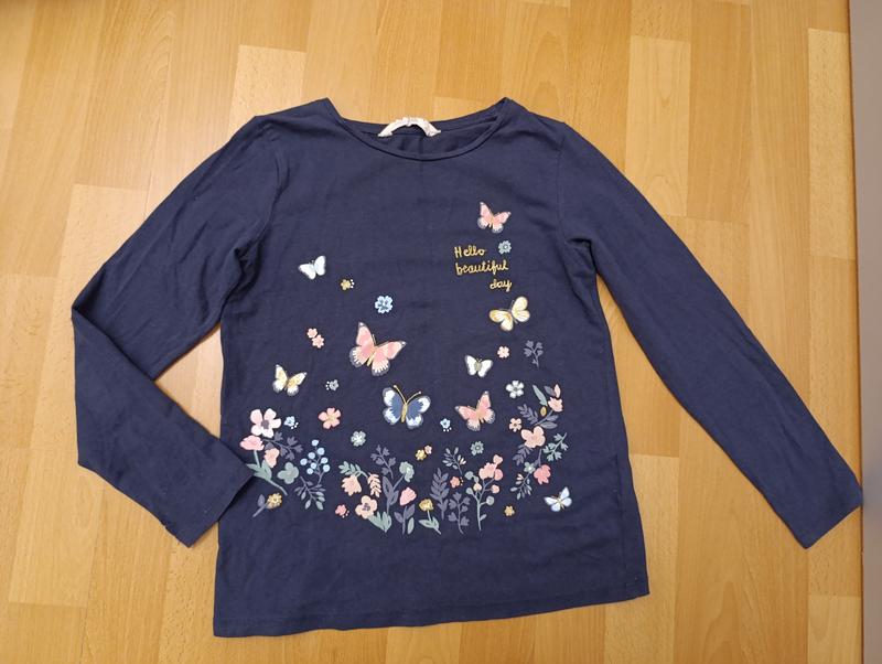 темно синя кофта на дівчинку з принтом бренд HM made in Bangladesh 95% cotton 5% elastan EUR 134-140 на 8-10 років довжина 49 см ПОГ 36 см довжина рукава 45 см