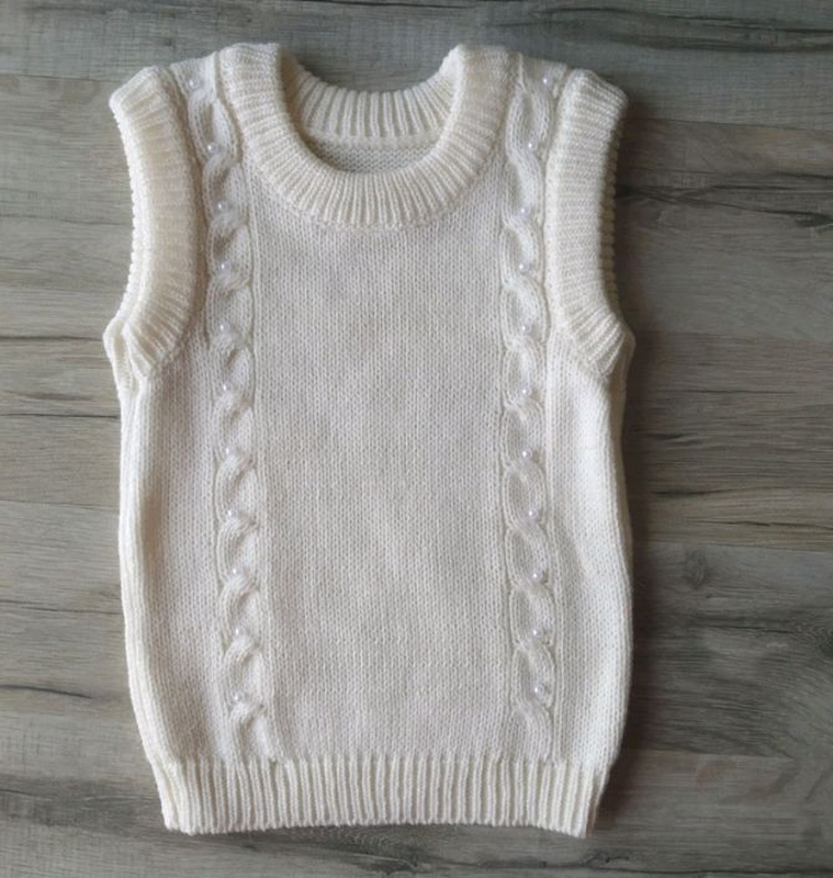 Виробник: Інший виробник Тип одягу: Інший тип одягу Детская вязаная жилетка, изготовленная на вязальной машинке. Мягкая, удобная, тёплая. Молочного цвета, украшенная бусинками. Демисезонная. Из качественного материала - полушерсть. Хорошо надевается через голову. Замеры: высота 36 см; ширина 25 см. Также можете посетить мою страничку, так как у меня имеется большой ассортимент различной детской одежды. За дополнительной информацией обращайтесь в сообщения, буду рада ответить на любые вопросы