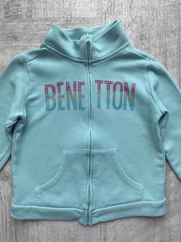 Стильная кофта на молнии Benetton. Очень красивый цвет, удобная модель. 100% бавовна. Размер XS, 4-5 лет, рост 110 см. Замеры: длина 38 см, пог 34 см, рукав от плеча 39 см. Состояние отличное.