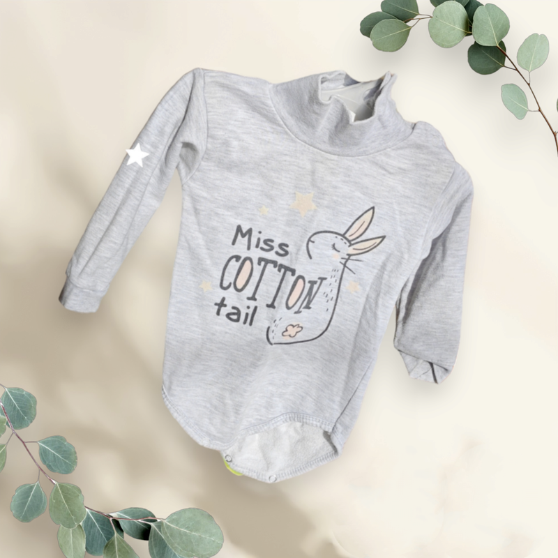 Боди гольф Зайчик серого цвета для девочки – модель пошита из трикотажа, который идеален и практичен в носке, и при этом не требует сложного ухода. Тип тканини футер Размер 74