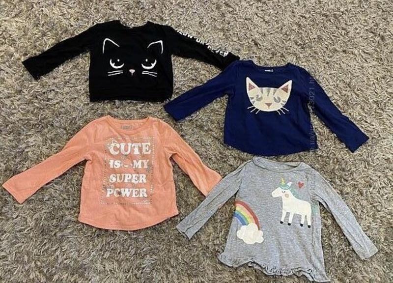 Продам регланы в отличном состоянии Фото 1 за все 200 грн Чёрный реглан с кошкой 1,5-2 года Серый с единорожком Carter’s Оранжевый и синий CrazY8 2 Фото 4 регланы H&M размер 2-4 года 100 грн Фото 5 100 за два Реглан с лисичкой размер 3Т Реглан с Дейзи 98 см ( есть незаметное пятнышко)