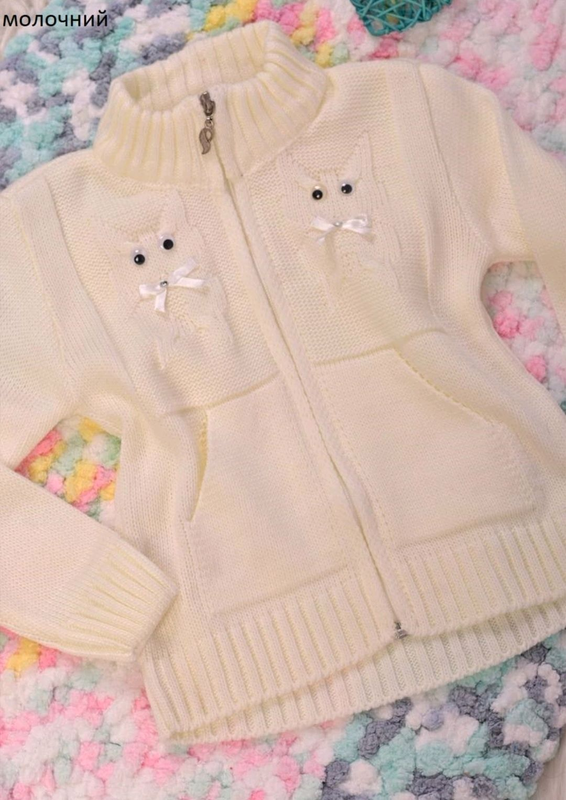 Виробник: Інший виробник Тип одягу: Кофти Кофта дитяча. Кофта має прикрасу у вигляді в'язаних котиків із оченятами. Країна виробник: Туреччина Склад: woo l,acrylic Якість: Відмінна Розмір у наявності: 4 рочки,6 рочків Колір у наявності: молочний Бірка: Так 🛑 При замовленні товару обов'язково вказуйте потрібний розмір!🛑